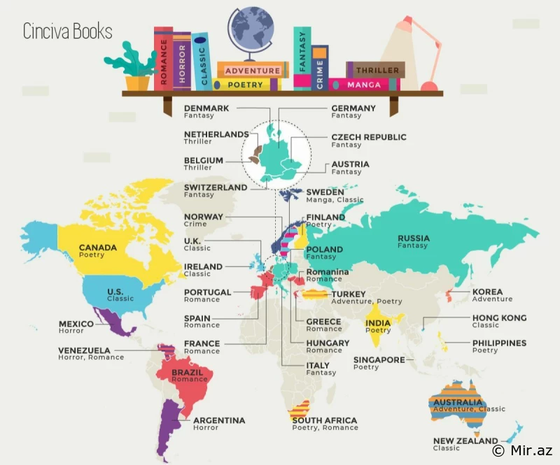 Qorxu janrı Latın ölkələrində, fantastik janrda olan kitablar isə Avropada ən populyar kitab janrıdır.