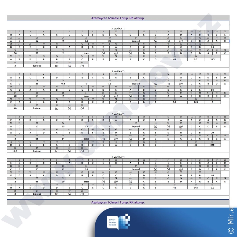 Mir.az » Dərslik » Blok imtahanı 11-ci sinif 1-ci qrup DİM 04.06.2023 Azərbaycan bölməsi - PDF