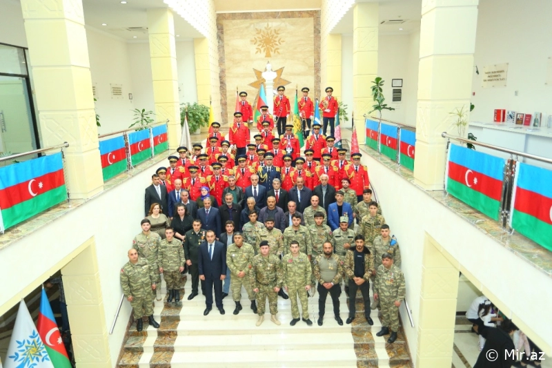 Azərbaycan Respublikası Müdafiə Nazirliyi Heydər Əliyev adına Hərbi İnstitutun orkestrinin ifasında Azərbaycan Respublikasının Dövlət Himni səsləndi və Vətən torpağı uğrunda canlarından keçərək ən Uca Zirvə- Şəhidlik zirvəsinə ucalmış qəhrəmanlarımızın əziz xatirəsi bir dəqiqəlik sükutla yad edildi.