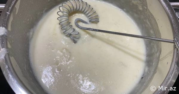 6. Beşamel sousu üçün unu kərə yağında qoxusu çıxana qədər qovurun, az-az süd əlavə edib qarışdırın. Ədviyyat əlavə edib ocağı söndürün.